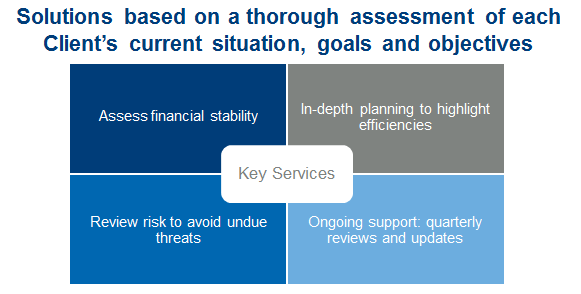 After reviewing our detailed questionnaire with the client all potential dangers, opportunities and strengths are discussed. We provide a thorough analysis concerning investments, insurance coverage, estate issues, cash flow forecasts and retirement timeline. Goals are established and will be monitored for progress.